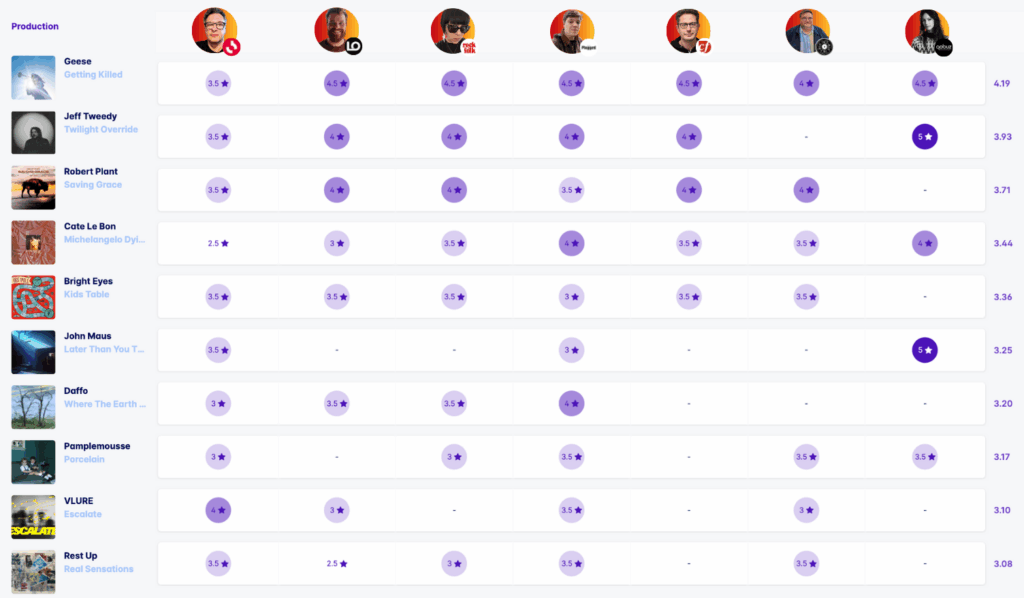 Ils ont donné leurs avis : Alexis Goyer (France Inter), Isabelle Chelley (Rock&Folk), Antoine Serrurier (Plugged), Charles Gallet (La Face B), Rémi Bonnet (Centre France), Charlotte Saintoin (Qobuz)