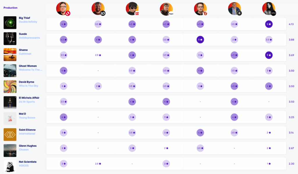 Cette semaine dans le tableau des étoiles, retrouvez l’avis des ambassadeurs donnés sur la plateforme sur une sélection d’albums éclectiques !
