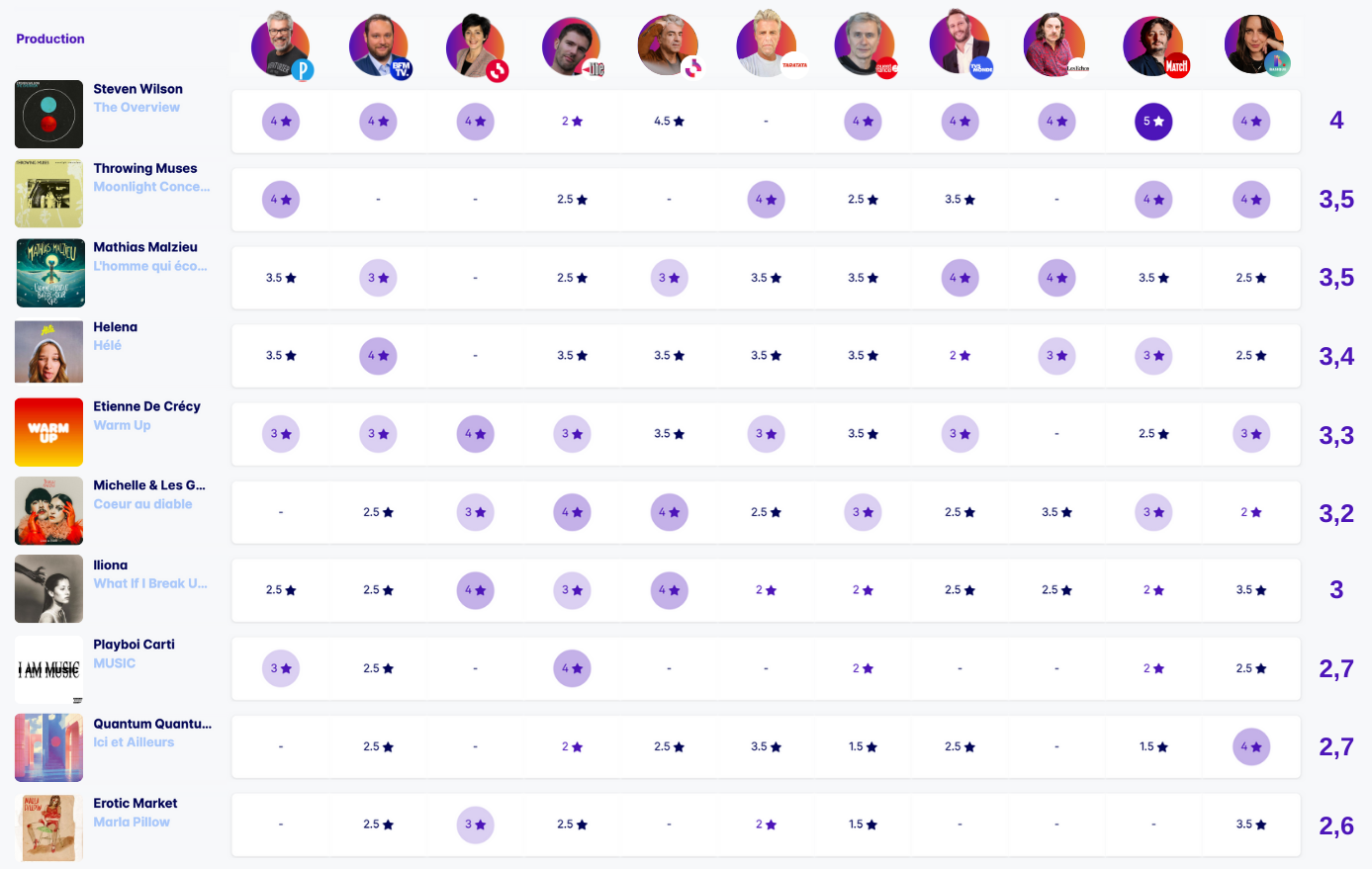 Cette semaine dans le tableau des étoiles, retrouvez l’avis des ambassadeurs donnés sur la plateforme sur une sélection d’albums éclectiques !