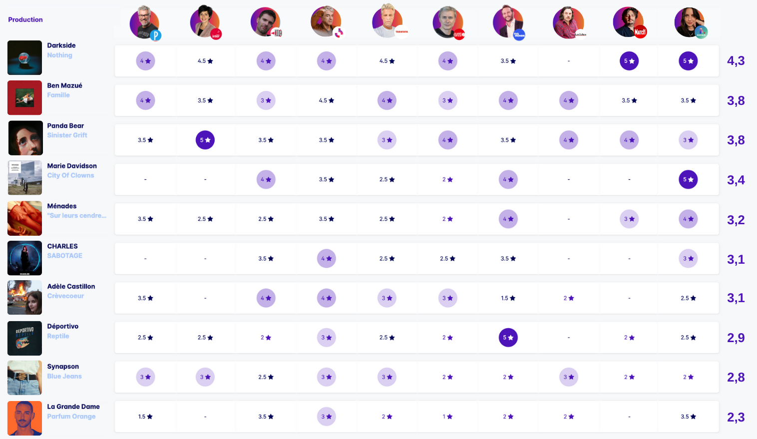 Cette semaine dans le tableau des étoiles, retrouvez l’avis des ambassadeurs donnés sur la plateforme sur une sélection d’albums éclectiques !