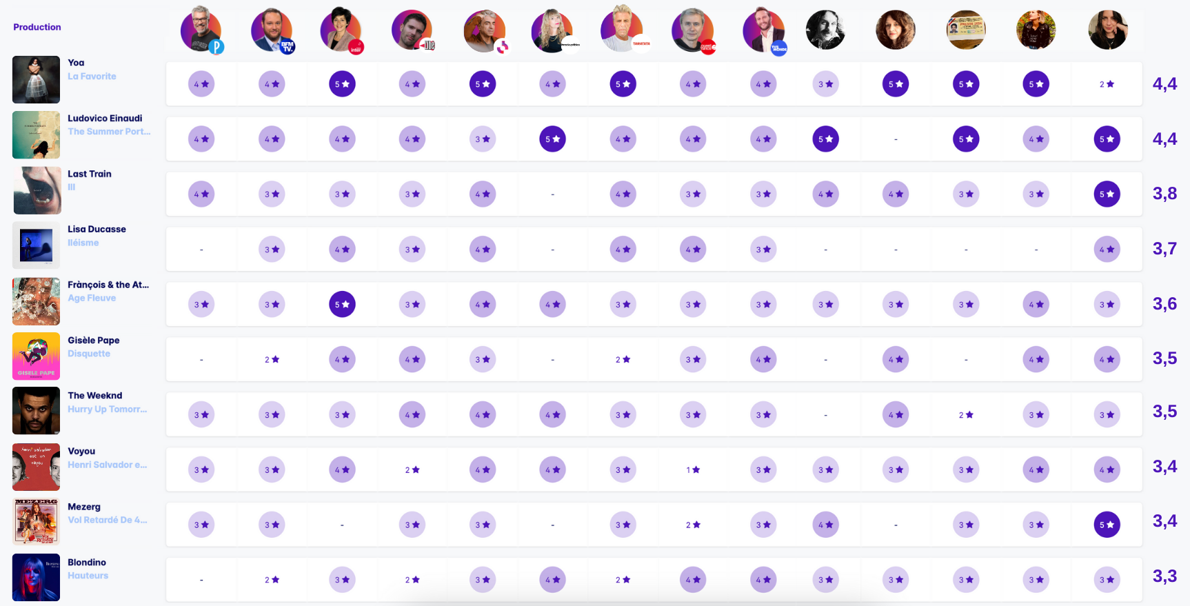 Cette semaine dans le tableau des étoiles, retrouvez l’avis des ambassadeurs donnés sur la plateforme sur une sélection d’albums éclectiques !