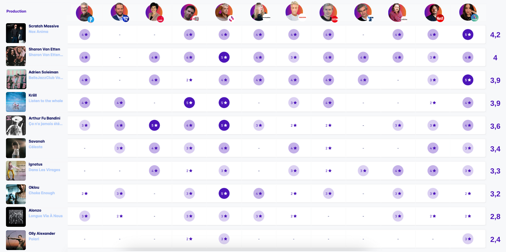 Cette semaine dans le tableau des étoiles, retrouvez l’avis des ambassadeurs donnés sur la plateforme sur une sélection d’albums éclectiques !