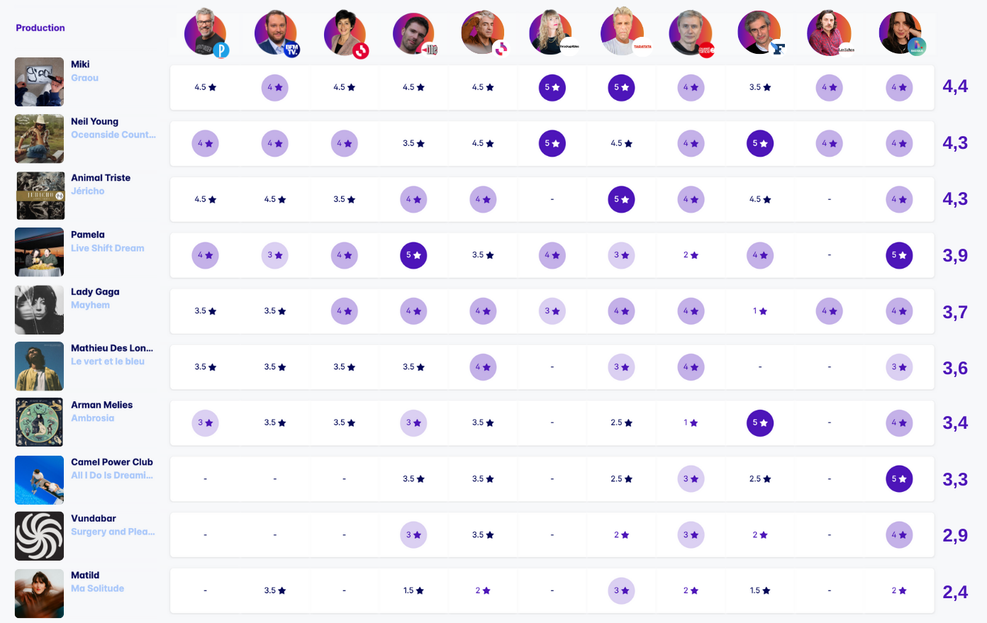 Cette semaine dans le tableau des étoiles, retrouvez l’avis des ambassadeurs donnés sur la plateforme sur une sélection d’albums éclectiques !