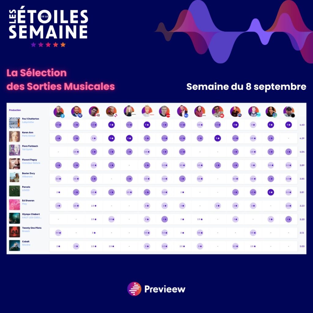 Cette semaine dans le tableau des étoiles, retrouvez l’avis des ambassadeurs donnés sur la plateforme sur une sélection d’albums éclectiques !