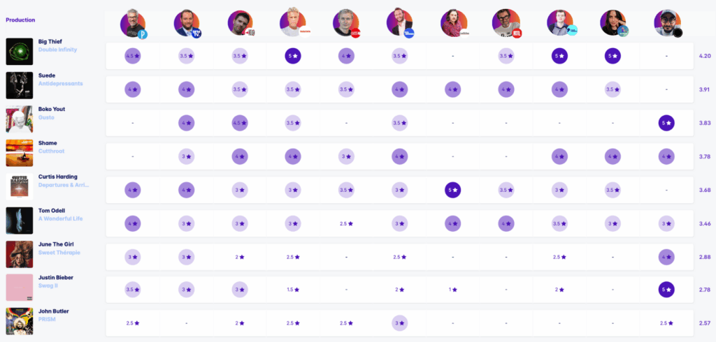 Cette semaine dans le tableau des étoiles, retrouvez l’avis des ambassadeurs donnés sur la plateforme sur une sélection d’albums éclectiques !