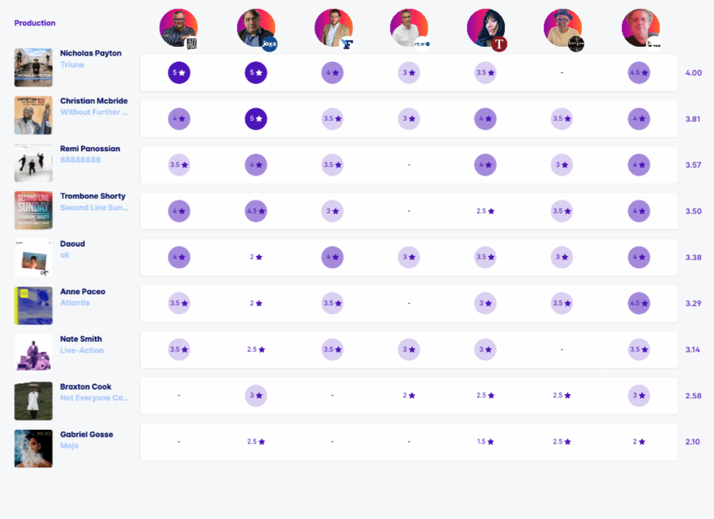 Cette semaine dans le tableau des étoiles, retrouvez l’avis des ambassadeurs donnés sur la plateforme sur une sélection d’albums éclectiques !