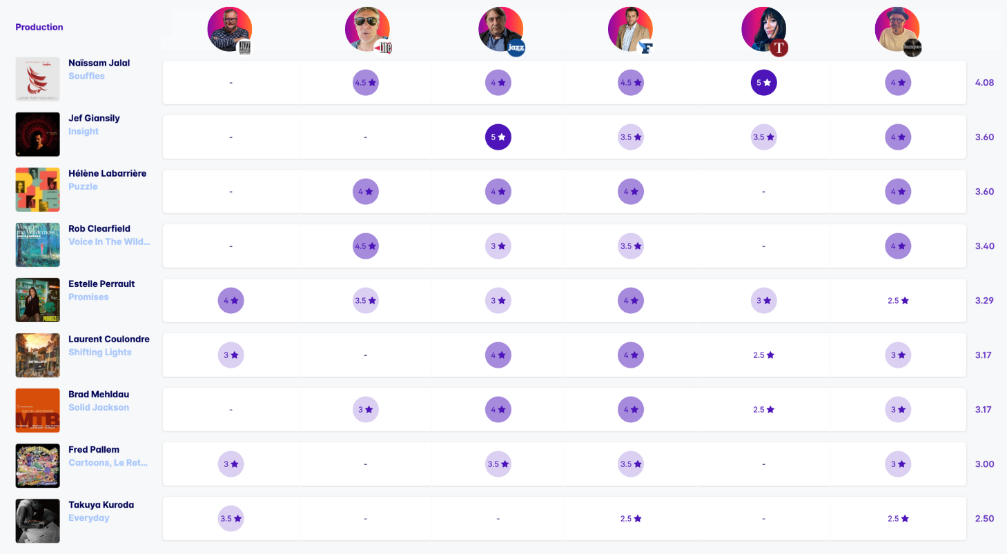 Ils ont donné leurs avis : Lionel Eskenazi (Jazz Magazine), Claude Zennaro (Jazz Radio), Jacques Denis (Libération), Juliette de Banes Gardonne (Le Temps), Jacques Prouvost (JAZZQUES) et Bruno Guermonprez (Jazz News)!