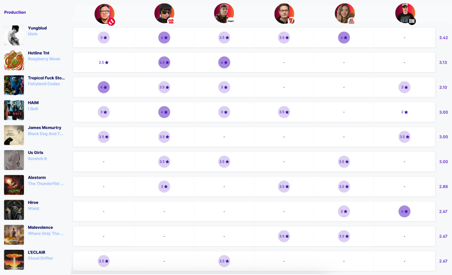 Cette semaine dans le tableau des étoiles, retrouvez l’avis des ambassadeurs donnés sur la plateforme sur une sélection d’albums éclectiques !
